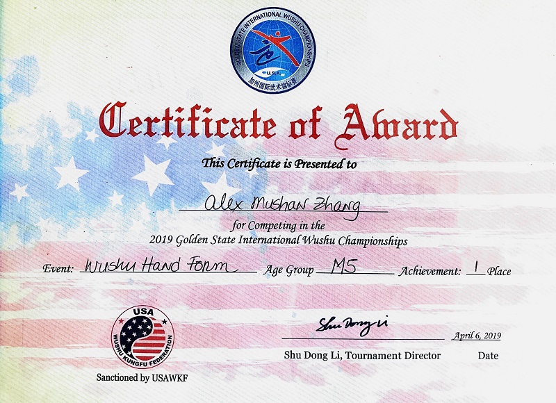 Recently, Alex Zhang, a student of Master Qi, competed in the 2019 Golden State International Wushu Championships as well as the tryouts for the USAWKF Kungfu Team. The event that he attended was hosted by the USA Wushu Kungfu Federation (USAWKF) on April 6 in San Jose, California and this specific competition was one of the largest and most influential ones that they host. In this one competition there was 726 atheletes that had participated.
